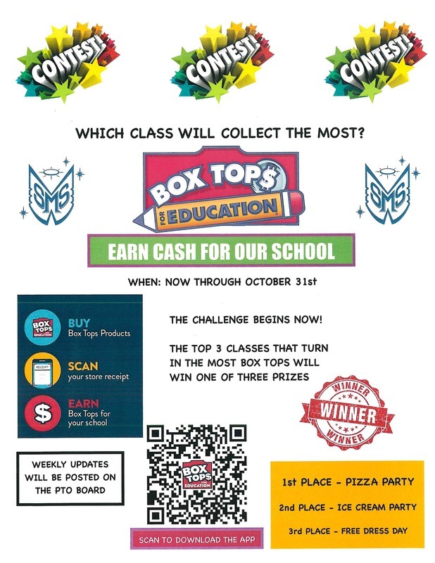Box Top Contest! Now through October 31, 2023. We are so excited to announce that we're once again collecting Box Tops, and this time, it's easier than ever. You no longer need to clip and turn in physical Box Tops. Instead, all you have to do is scan your store receipt, and the donations will automatically flow in to support our school.